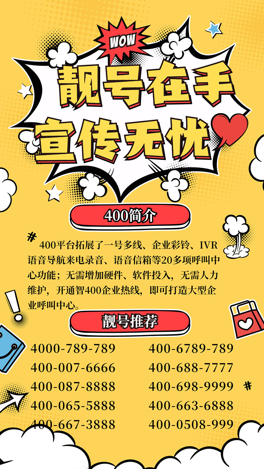 2022年6月30日 400電話優(yōu)質(zhì)號(hào)碼優(yōu)惠申請(qǐng)辦理信息推薦 400電話熱線,讓企業(yè)擁有辦公管家,遇到突發(fā)狀況不迷茫,省時(shí)省力更省心!今日精心推薦>>>>400-090-6666400-068-6666400-087-8888400-078-7777400-096-9999400- 優(yōu)惠活動(dòng) 2022年06月30日 0 點(diǎn)贊 0 評(píng)論 1544 瀏覽