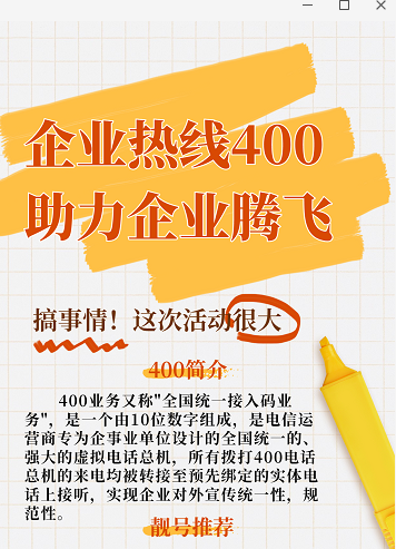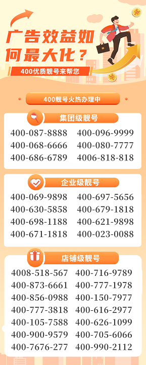 2022年5月6日 400電話優(yōu)質(zhì)號(hào)源推薦 廣告效益如何最大化?進(jìn)線問題和占線問題怎么解決?客戶滿意度如何提升?——辦理一個(gè)400400-087-8888 400-096-9999400-068-6666 400-080-7777400-686-6789 4006-818-818集團(tuán)頂級(jí) 優(yōu)惠活動(dòng) 2022年05月06日 0 點(diǎn)贊 0 評(píng)論 1526 瀏覽
