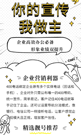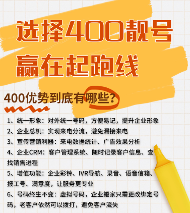 百萬(wàn)企業(yè)用戶(hù)的通信首選開(kāi)通400電話(huà),體現(xiàn)企業(yè)服務(wù)意識(shí)彰顯您品牌實(shí)力400電話(huà)熱線(xiàn),讓企業(yè)擁有辦公管家,遇到突發(fā)狀況不迷茫,省時(shí)省力更省心!4000-588-5584006-998-558400-9976-588聯(lián)系客服領(lǐng)取大額優(yōu)惠券400-0