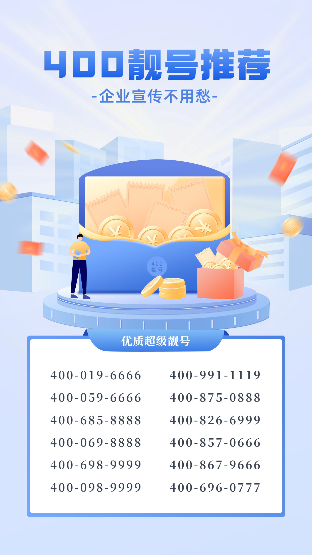 2022年7月21日 400電話新靚號(hào),新機(jī)會(huì),新高度 辦理個(gè)靚號(hào),助力事半功倍 新靚號(hào),新機(jī)會(huì),新高度辦理個(gè)靚號(hào),助力事半功倍<<<400今日精選>>>400-077-0000400-007-6666400-087-8888400-070-9999集團(tuán)頂級靚號(hào),活動(dòng)銷售價(jià)168000元/ 優(yōu)惠活動(dòng) 2022年07月21日 0 點(diǎn)贊 0 評論 1351 瀏覽