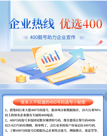2022年9月16日 400企業(yè)服務(wù)熱線申請辦理優(yōu)質(zhì)號(hào)碼優(yōu)惠信息匯總 400號(hào)碼是企業(yè)的不動(dòng)產(chǎn),靚號(hào)是身份和地位的象征。今日精選:400-698-9999400-677-9999400-087-8888400-685-8888400-070-6666400-077-6666集團(tuán)頂級靚號(hào),活動(dòng)銷售價(jià)168000元/ 優(yōu)惠活動(dòng) 2022年09月16日 0 點(diǎn)贊 0 評論 1360 瀏覽